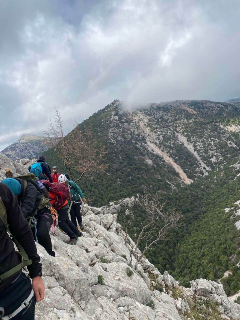 The trail descends into the Lousios Gorge, following the sound of the river through dense chestnut and plane forests. Along the way, we cross old stone bridges and reach the Philosofou Monastery, carved into the cliffside 200 meters above the riverbed — a breathtaking sight.
